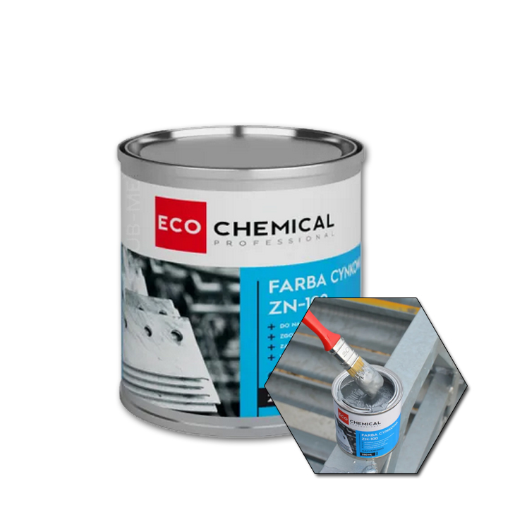 ECOCHEMICAL ZN100 to specjalistyczna farba cynkowa w puszce, przeznaczona do zabezpieczania konstrukcji stalowych i elementów metalowych. Dzięki wysokiej zawartości czystego cynku zapewnia skuteczną ochronę przed korozją, tworząc trwałą powłokę ochronną.