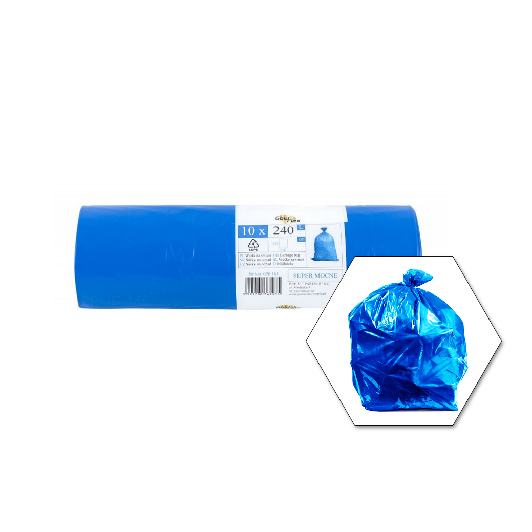 WORKI NA ŚMIECI 240L NIEBIESKIE BARDZO GRUBE SUPER MOCNE